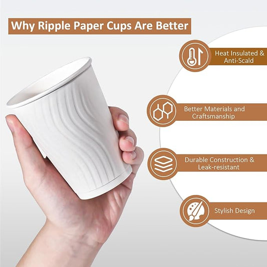 12 oz Disposable Coffee Cups 500 Count Value Pack, Hot Coffee Cups for Hot/Cold Drinks, Insulated Paper Coffee Cup for Party, Office, Home, Travel