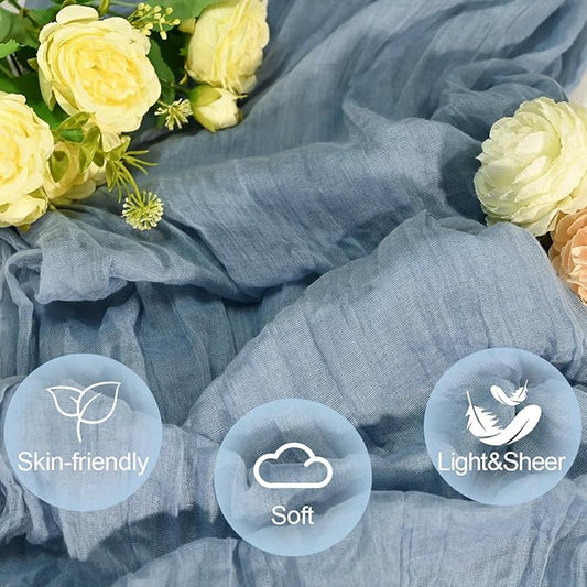 12 Pack Dusty Blue Cheesecloth Table Runner 10FT Long Boho Gauze Table Runner Rustic Sheer Runner for Wedding Bridal Baby Shower Birthday Party Table Decor Thanksgiving Christmas Decorations