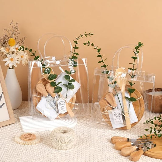 109Pcs Baby Shower Prizes for Game Winners 12 Sets Cheese Board Spoon Fork Butter Spreaders Plaid Towel Thank You Card and Gift Bags for Baby Shower Wedding Bridal Shower Favors (12, Bamboo Color)