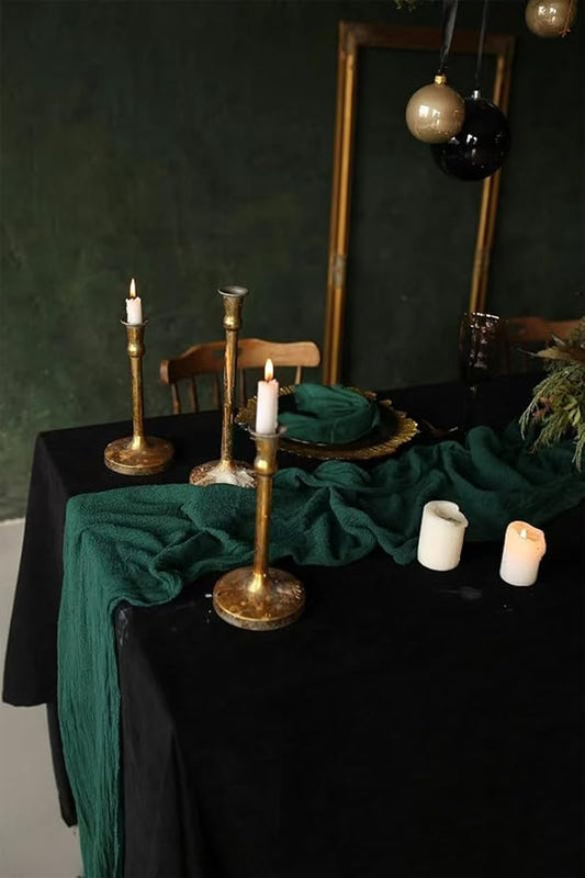 12Pack Emerald Green Table Runner 35 x 120 inch Cheesecloth Table Runner 10FT Boho Table Runners Rustic Gauze Cheese Cloth Table Runners for Party Wedding Birthday Dining Bridal Baby Shower Decor