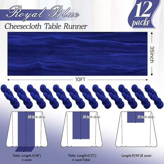 12Pack Royal Blue Table Runners 35 x 120 inch Cheesecloth Table Runner 10FT Boho Table Runners Rustic Gauze Cheese Cloth Table Runner for Party Wedding Birthday Dining Bridal Shower Baby Shower Decor