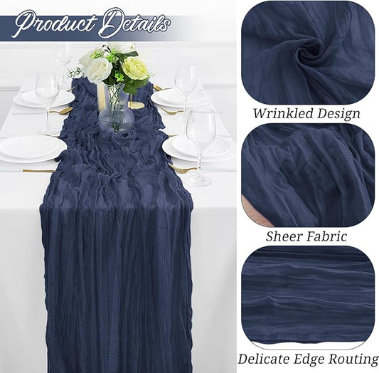 12Pack Navy Blue Table Runner 10FT Cheesecloth Table Runner 35x120inch Cheese Cloth Table Runners Rustic Boho Gauze Table Runners for Party Wedding Birthday Dining Bridal Shower Baby Shower Decor