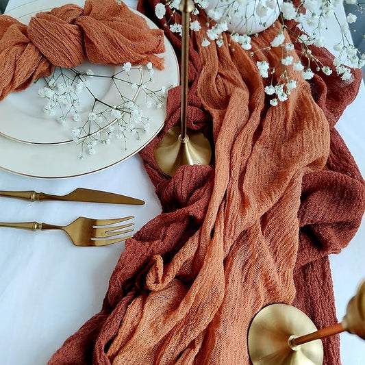 12Pack Terracotta Table Runner 10FT Cheesecloth Table Runner 35x120inch Cheese Cloth Table Runners Rustic Boho Gauze Fall Table Runners for Party Wedding Birthday Dining Bridal Baby Shower Decor