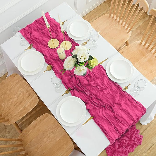 12Pack Hot Pink Cheesecloth Table Runner 35x120Inch Spring Easter Cheese Cloth Table Runner 10FT Boho Gauze Table Runners Rustic Sheer Table Runners for Wedding Bridal Shower Baby Shower Party Decor