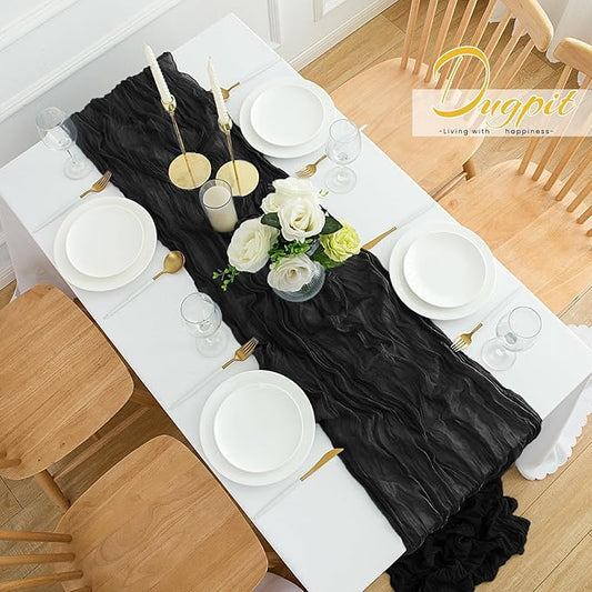 12Pack Black Halloween Table Runner 35 x 120 inch Cheesecloth Table Runner 10FT Boho Table Runners Rustic Gauze Cheese Cloth Table Runners for Party Wedding Birthday Dining Bridal Baby Shower Decor