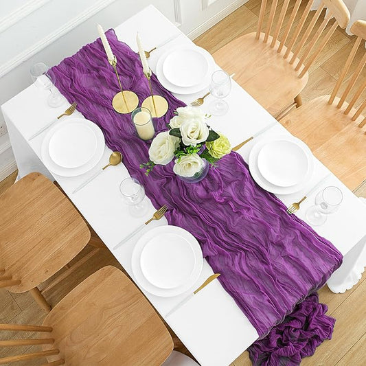 12Pack Purple Table Runner 10FT Cheesecloth Table Runner 35x120inch Cheese Cloth Table Runners Rustic Boho Gauze Table Runners for Party Wedding Birthday Dining Bridal Baby Shower Decor