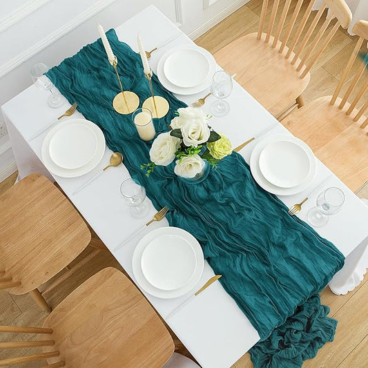 12Pack Teal Cheesecloth Table Runner 35 x 120 inch Cheese Cloth Table Runner 10FT Boho Table Runners Rustic Gauze Table Runners for Party Wedding Birthday Dining Bridal Shower Baby Shower Decor