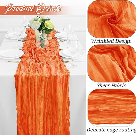 12Pack Orange Table Runner 10FT Cheesecloth Table Runner 35x120inch Cheese Cloth Table Runners Rustic Boho Gauze Fall Table Runners for Party Wedding Birthday Dining Bridal Shower Baby Shower Decor