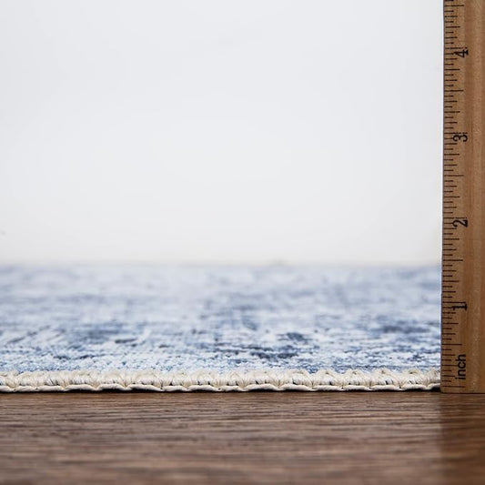 Bloom Rugs Washable Non-Slip 10 ft Runner - Blue Traditional Runner for Entryway, Hallway, Bathroom, and Kitchen - Exact Size: 2.5' x 10'