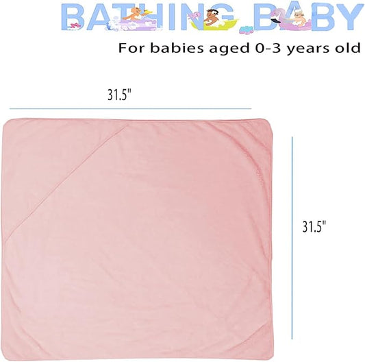 Baby Hooded Towels 31.5 * 31.5" Bath Towel for Newborn Toddler Infant Shower Ultra Absorbent Soft Bathrobe Blanket Boys and Girls 2PCS(Sakura Pink)