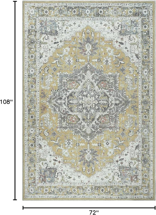 Bloom Rugs Washable Non-Slip 6' x 9' Rug - Yellow Traditional Medallion Area Rug for Living Room, Bedroom, Dining Room, and Kitchen - Exact Size: 6' x 9'