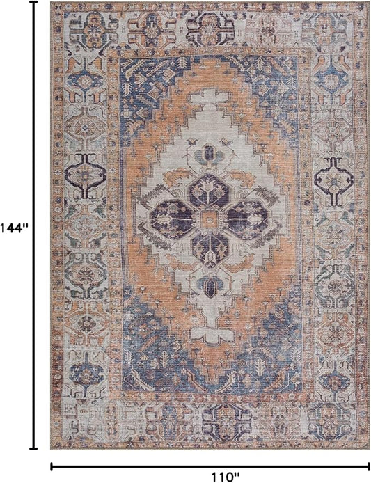 Bloom Rugs Washable 9' x 12' Rug - Orange/Blue/Beige Traditional Area Rug for Living Room, Bedroom, Dining Room, and Kitchen - Exact Size: 9' x 12'