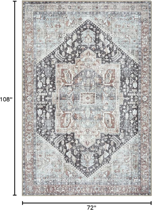 Bloom Rugs Washable Non-Slip 6' x 9' Rug - Charcoal/Brown Traditional Medallion Area Rug for Living Room, Bedroom, Dining Room, and Kitchen - Exact Size: 6' x 9'