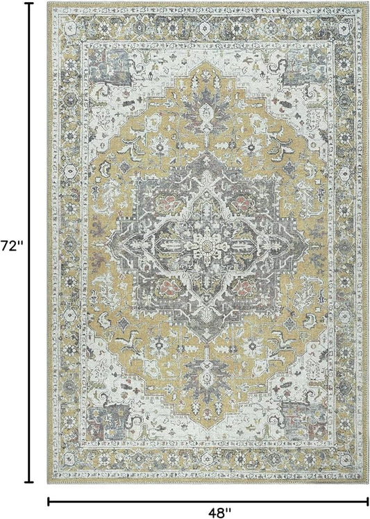 Bloom Rugs Washable Non-Slip 4' x 6' Rug - Yellow Traditional Medallion Area Rug for Living Room, Bedroom, Dining Room, and Kitchen - Exact Size: 4' x 6'