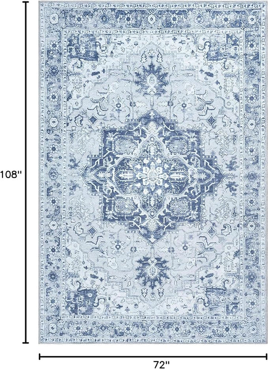 Bloom Rugs Washable Non-Slip 6' x 9' Rug - Gray/Blue Traditional Medallion Area Rug for Living Room, Bedroom, Dining Room, and Kitchen - Exact Size: 6' x 9'
