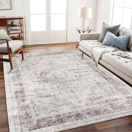 Washable Vintage Area Rug 6x9 Boho Chic Medallion Distressed Design Non-Shedding Easy Care Ideal for High Traffic Areas in Living Room Bedroom Kitchen Office Large Carpet