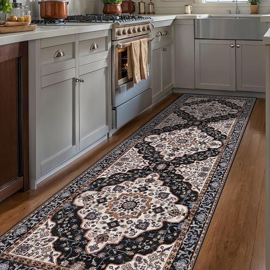 Ciicool Washable Runners Area Rug for Hallways, Ultra Soft 2'6 "x8' ft Boho Print Non-Slip Vintage Oriental Medallion Long Carpet for Kitchen Bedroom Laundry Bathroom