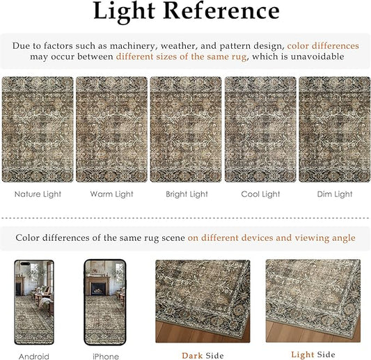 Vintage Area Rug 5x7 Brown Washable Living Room Large Carpet Non Slip Bedroom Indoor Office Low Pile Traditional Distressed Retro Accent Rug for Dining Room Bathroom Kitchen