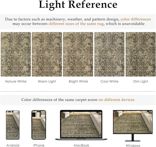 Vintage Area Rug 9x12 Washable Olive Brown Living Room Carpet Large Indoor Non Slip Bedroom Low Pile Kitchen Distressed Retro Accent Throw Rug for Dining Room
