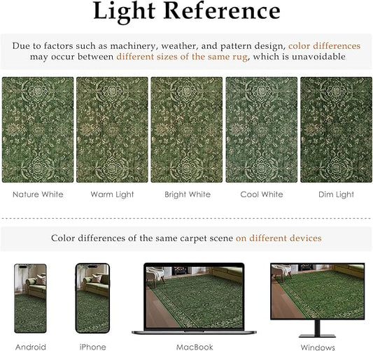 Vintage Area Rug 6x9 Washable Green Living Room Carpet Large Indoor Non Slip Bedroom Low Pile Kitchen Distressed Retro Accent Throw Rug for Dining Room