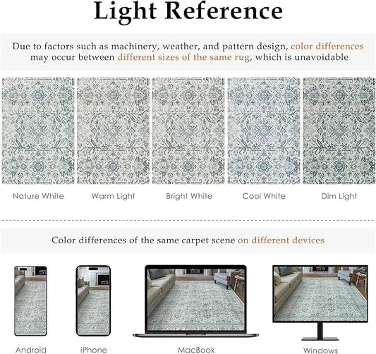 Vintage Area Rug 4x6 Blue Entryway Office Washable Carpet Non Slip Bedroom Indoor Living Room Door Mat Low Pile Traditional Distressed Retro Accent Rug for Dining Room Bathroom Kitchen