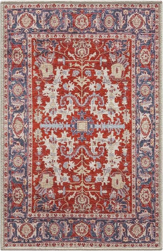 Keen Home Design 4x6 Rug - Machine Washable Area Rug with Non-Slip Backing, Ideal for Living Room, Dining Room, Bedroom - Vintage, Easy Clean, Durable, Low Pile Rug - (4' x 6')