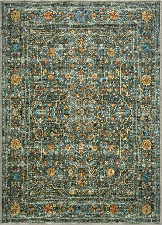 Keen Home Design 6x9 Rug - Machine Washable Area Rug with Non-Slip Backing, Ideal for Living Room, Dining Room, Bedroom - Vintage, Easy Clean, Durable, Low Pile Rug - (6' x 9')
