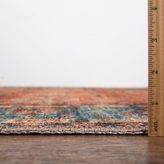 Bloom Rugs Washable Non-Slip 6' x 9' Rug - Terracotta/Mustard Traditional Area Rug for Living Room, Bedroom, Dining Room, and Kitchen - Exact Size: 6' x 9'