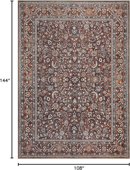 Bloom Rugs Washable Non-Slip 9' x 12' Rug - Dark Brown/Orange Traditional Bordered Area Rug for Living Room, Bedroom, Dining Room, and Kitchen - Exact Size: 9' x 12'