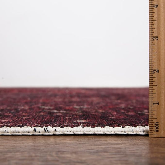 Bloom Rugs Washable Non-Slip 5' x 7' Rug - Dark Red Traditional Bordered Area Rug for Living Room, Bedroom, Dining Room, and Kitchen - Exact Size: 5' x 7'