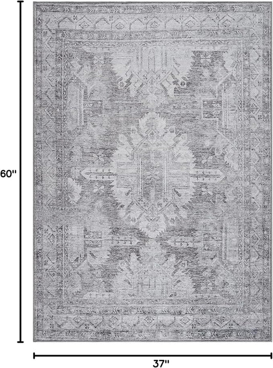 Bloom Rugs Washable 4' x 6' Rug - Ivory/Silver Gray Traditional Area Rug for Living Room, Bedroom, Dining Room, and Kitchen - Exact Size: 4' x 6'