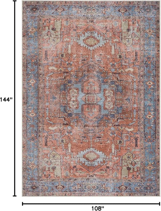 Bloom Rugs Washable 9' x 12' Rug - Terracotta/Blue Traditional Area Rug for Living Room, Bedroom, Dining Room, and Kitchen - Exact Size: 9' x 12'