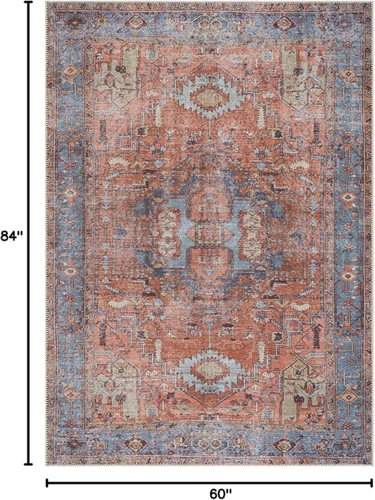 Bloom Rugs Washable 5' x 7' Rug - Terracotta/Blue Traditional Area Rug for Living Room, Bedroom, Dining Room, and Kitchen - Exact Size: 5' x 7'