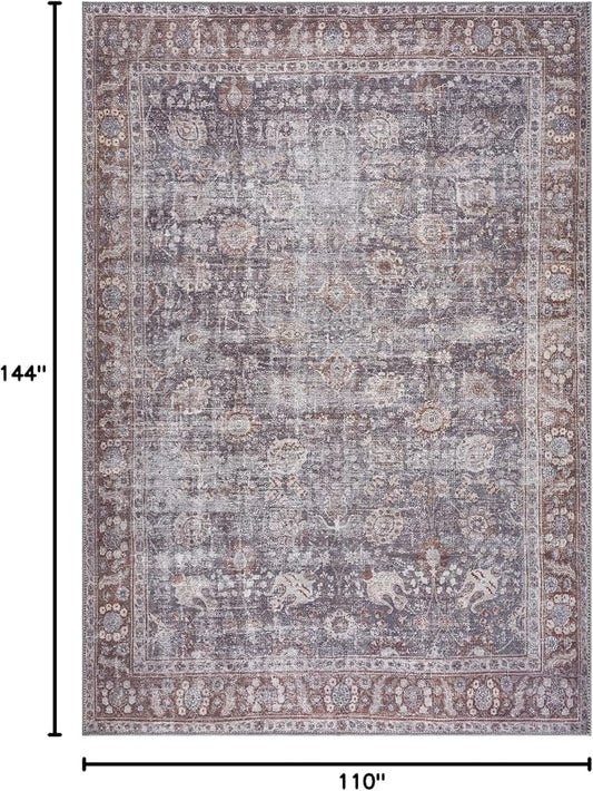 Bloom Rugs Washable 9' x 12' Rug - Brown/Dark Gray Traditional Area Rug for Living Room, Bedroom, Dining Room, and Kitchen - Exact Size: 9' x 12'