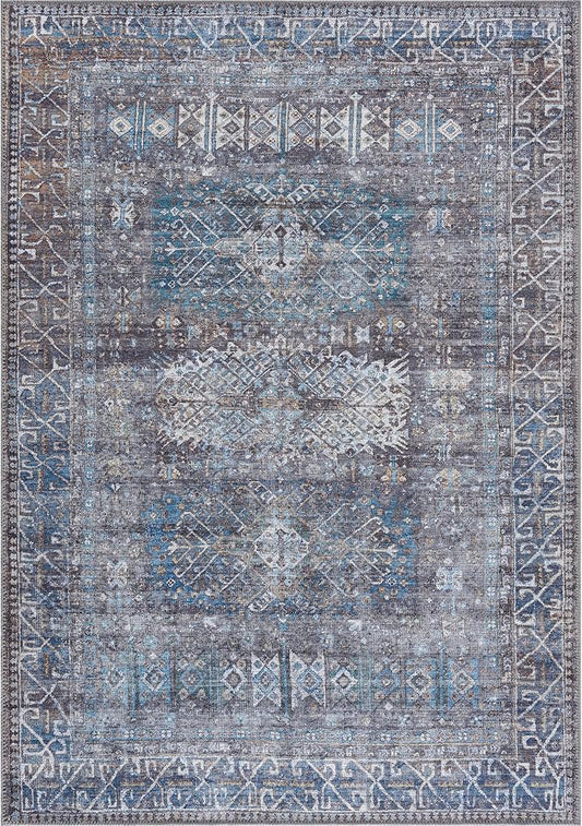Bloom Rugs Washable 6' x 9' Rug - Slate Gray/Blue Traditional Area Rug for Living Room, Bedroom, Dining Room, and Kitchen - Exact Size: 6' x 9'