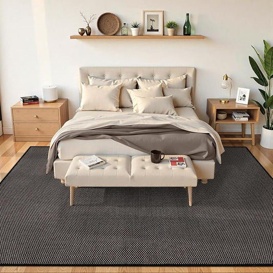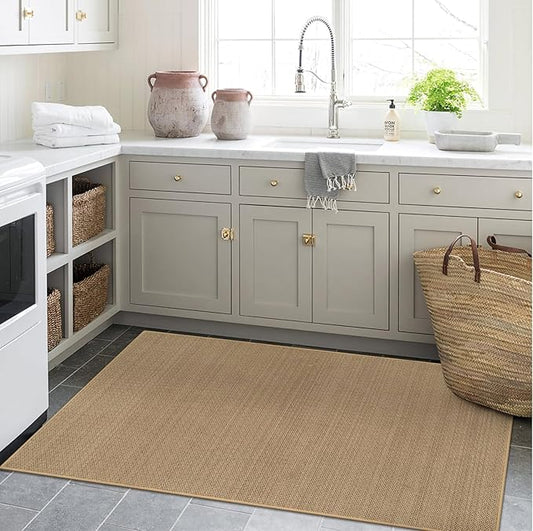Carvapet 5x7 Rugs for Living Room Bedroom, Washable Jute Low Pile Solid Natural Carpet with Rubber Backing, Foldable, Non Slip Thin Area Rug