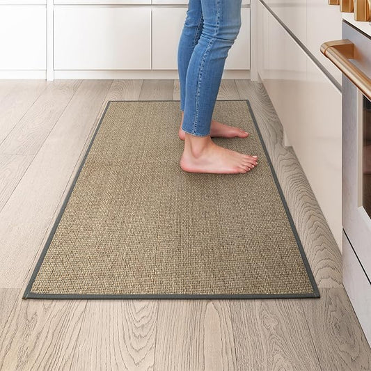 Carvapet 8x10ft Jute Area Rug Modern Boho Gray Carpet with Faux Jute Texture, Low Pile Foldable Non Slip Machine Washable Rug for Living Room Bedroom Decor