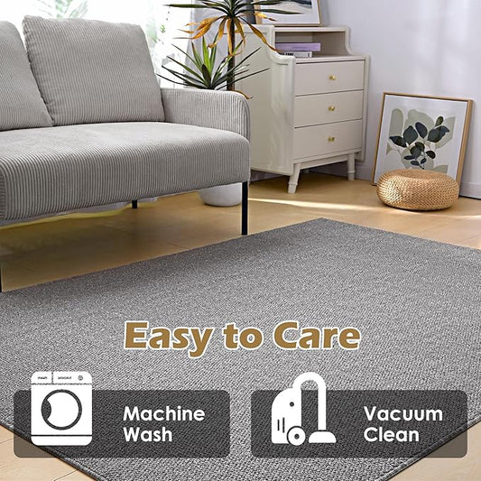 Carvapet 6x9ft Gray Jute Area Rug 9 x 6 Modern Solid Boho Rug with Rubber Backing, Foldable Non Slip Washable Carpet for Living Room Bedroom Home Decor