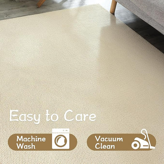 Carvapet 6x9 Solid Large Rugs for Living Room Bedroom Dorm, 6 x 9 Washable Off-White Low Pile Jute Carpet with Rubber Backing, Foldable, Non Slip Thin Area Rug