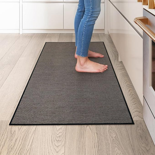 Wonnitar Farmhouse Washable Kitchen Runner Rug, 2x5 Rug Runner Rubber Backed Non Slip Bathroom Rugs, Neutral Absorbent Braided Bathroom Carpet Runner for Bedroom Kitchen Entry Hallway(Black,2'x5')