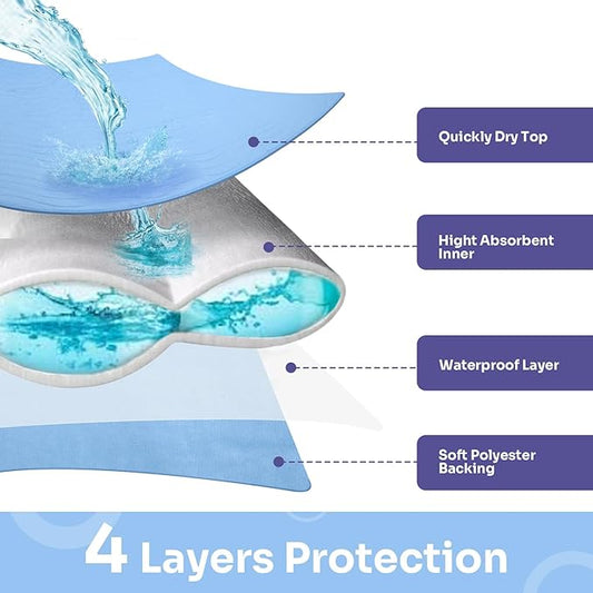 Heavy Absorbency Bed Pad, Washable and Reusable Incontinence Bed Underpads, 34"X36" (4 Pack), Waterproof Mattress Protector