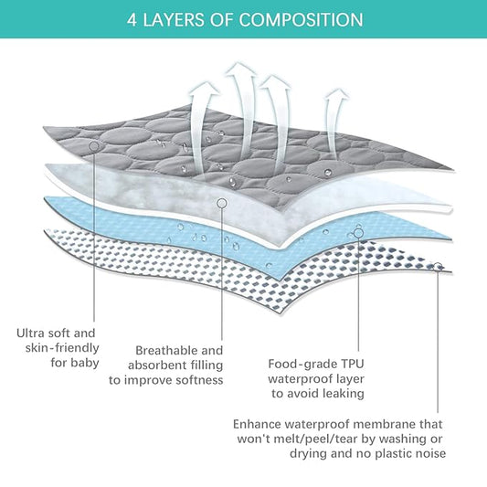 Biloban Crib Mattress Protector 2 Pack, Waterproof, Quilted, Grey & White, Absorbent, Ultra Soft, Noiseless, Durable