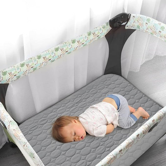 Pack and Play Mattress Protector Sheets Waterproof 2 Pack, Quilted Pack and Play Mattress Pad Cover Fitted Fits for Graco Pack n Play Playard Mattress/Playpen Mattress, Grey, 39" x 27"