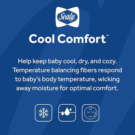 Sealy Baby Cool Comfort Cooling Breathable Waterproof Crib Mattress Protector Pad, Toddler Bed Cover, Infant and Newborn Durable Comfortable Topper, Machine Washable and Dryer Friendly, 52x28”- White