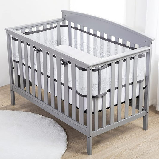 BreathableBaby Breathable Mesh Liner for Full-Size Cribs, Deluxe 4mm Mesh, Gray Links (Size 4FS Covers 3 or 4 Sides)