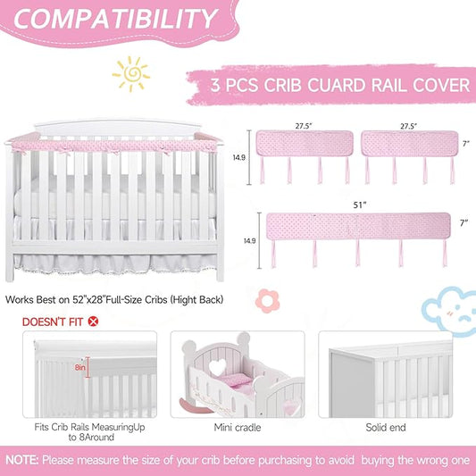 3 in 1 Crib Rail Covers for Life Size Cribs,White Soft Anti-Collision Strip Corner Covers,Protect Baby Teeth and Save Crib Rails, Rail Edge Protector Strip (white01) (Pink)