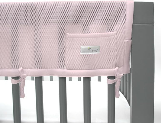 BreathableBaby Breathable Mesh RailGuard Teething Cover — White — 51” Long Panel (1) — Fits Most Full-Size and Does Not Fit Mini Cribs — Use with Coordinating Short Panels - Light Pink