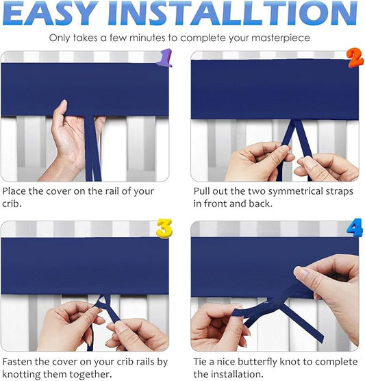 Navy Blue 3pcs New Teething Edge Crib Rail Cover&Corner Guard Coverage Straps,Reversible Guardrail Cover Protector for Boys Girls(1 Long 2 Short)
