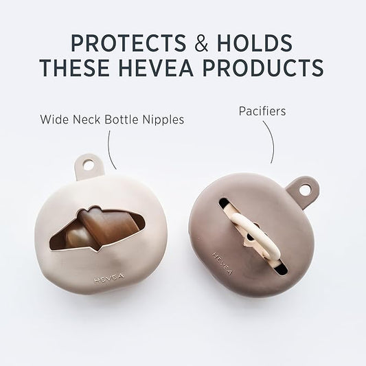 HEVEA Natural Rubber Pacifier Holder Case - 100% Natural Rubber - Danish Design Hygienic Holder for Pacifiers & Bottle Nipples, Easily Attaches to Bags & Strollers, BPA-Free, Vegan - Tan Beige
