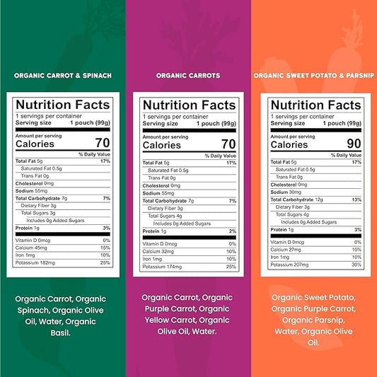 Serenity Kids 6+ Months Baby Food Pouches USDA Organic Veggie Puree - BPA-Free - No Added Sugar Allergen-Free - Savory Sweet Potato & Carrot, Beet Baby Snacks - 3.5 Oz, 6 Pack